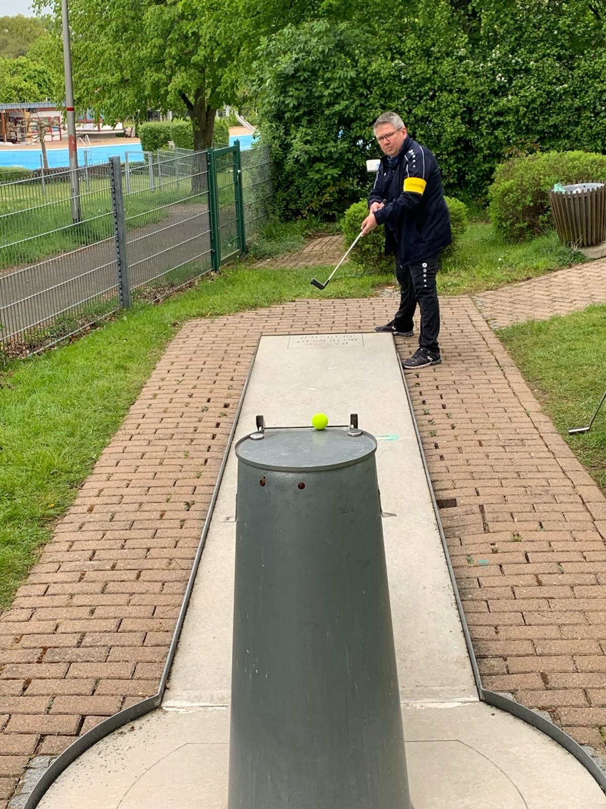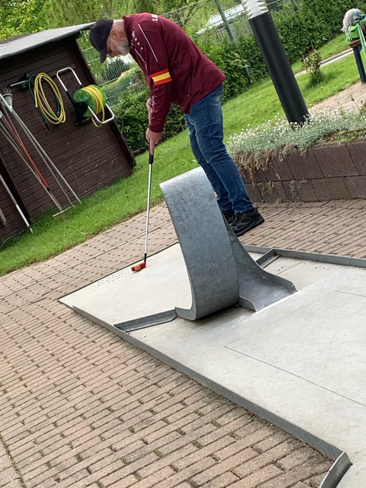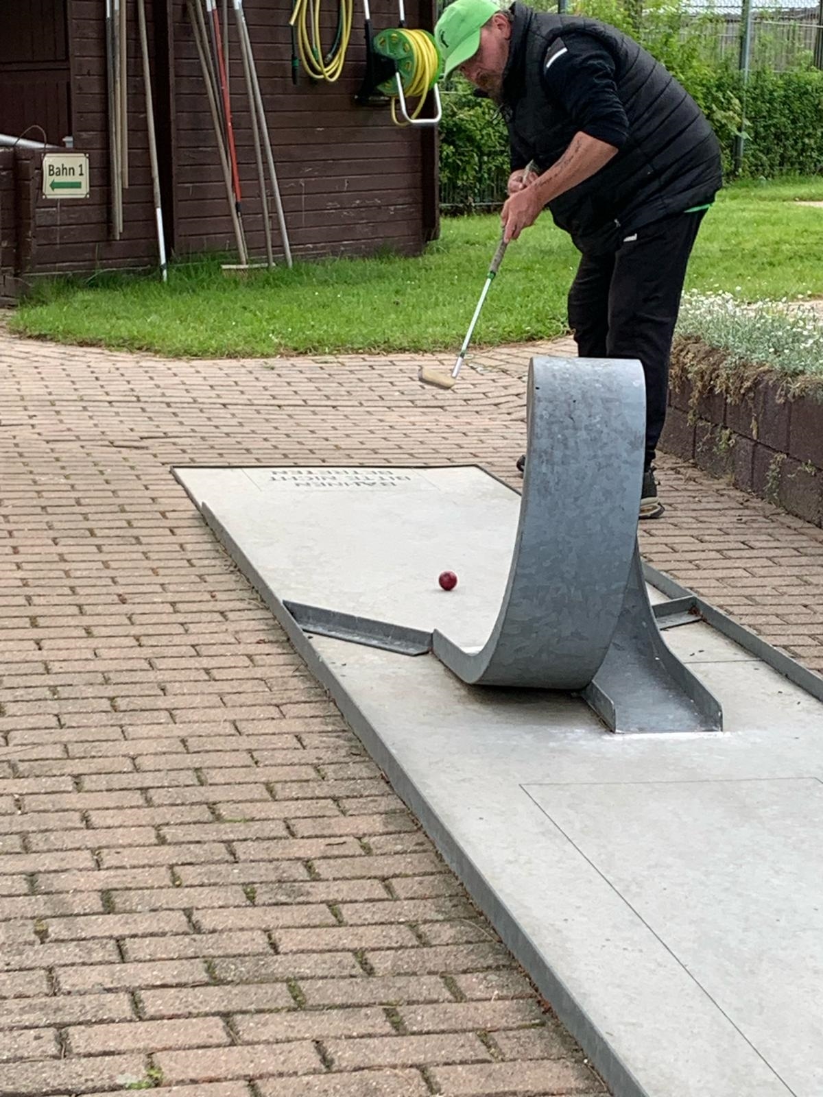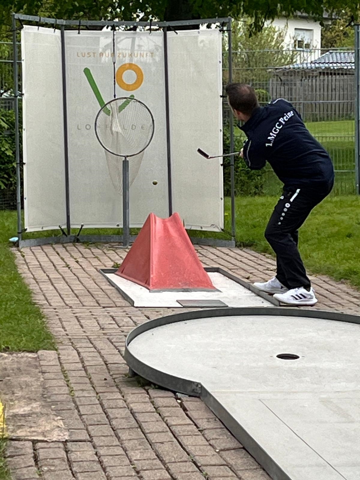 87 Schläge sollten heute Tagesbestleistung werden. Bedingt dranbleiben konnten da nur die Göttinger (102), die heute mit Sandra Brendler für Matthias Schulz an den Start gingen. Steffen Brendler freute sich in Runde 1 über eine starke 20er Runde. Auch Patrick Bartholomä konnte mit 22 Schlägen grün an die Tafel bringen. Alles anderen mussten rote oder sogar schwarze Runden abzeichnen. Wer Lohfelden nicht kennt, dem sei gesagt, es gibt viele Bahnen an denen man Asse machen kann. Aber plötzlich gehen genauso gute Schläge einfach nicht mehr rein. Es musste also sehr genau gespielt werden um hier erfolgreich zu sein. Das hatte das Peiner Team am 2. Trainingstag ebenfalls zu spüren bekommen auf den Trainingsprotokollen. Dazu noch ein Hochteller, der an den in Flensburg Harrislee erinnert und einen Schrägkreis, an dem man nicht wirklich putten möchte. Auch die Röhre brachte manchen Aktiven zum Verzweifeln, denn auch hier musste genau eingespielt werden. Auf den Plätzen kamen weiter Wolfsburg (114) vor Lohfelden (117), denen man die Nervosität anmerken konnte. Man hatte sich heute viel vorgenommen. Die rote Laterne übernahm Kassel Vellmar die mit 124 Schlägen noch Luft nach Oben hatten. Auch die nächsten Durchgänge brachten alle Farben an die Tafel und das Wetter wurde wärmer aber auch windiger, was so manchen Blütenregen mit sich brachte. Peine spielte in Runde 2 einen 93er Runde und dann kam es auch für die Favoriten so, dass sich die Trainingseindrücke wiederholten, denn mit zwei 99er Runden war dann auch bei Peine mehr rot als grün auf den Protokollen zu finden. Um die Plätze 2 und 3 kämpften heute Wolfsburg und Göttingen. Göttingen konnte in Runde 2 noch dagegenhalten aber in Runde 3 musste man die Wolfsburger dann vorbeilassen, die mit einem 96 Durchgang sogar Peine im Sack hatten. Bei Göttingen war dann auch die Luft raus, da halfen auch die guten Runden von Holger Fabry nicht. Zu viele schwarze Runden waren im Aushang zu finden. Am Ende wurde es Platz 3. Wolfsburg spielte zwar nicht überragend, aber konstant und damit holte man sich heute mit 416 Schlägen und einem 26,0 Schnitt 6 Punkte. Um Platz 4 und 5 kämpften die Heimspieler und der Nachbar aus Vellmar. Hier hatten aber die Lohfeldener die Nase vorn. Mit 449 Schlägen holte man sich, die ersten 2 Punkte der Saison. Vellmar kam am Ende auf 461 Schläge. Den Tagessieg holte sich wiederum das Team aus der Fuhsestadt mit 378 Schlägen und einem Schnitt von 23,675. In 4 Wochen richtet Peine dann den nächsten Spieltag aus.