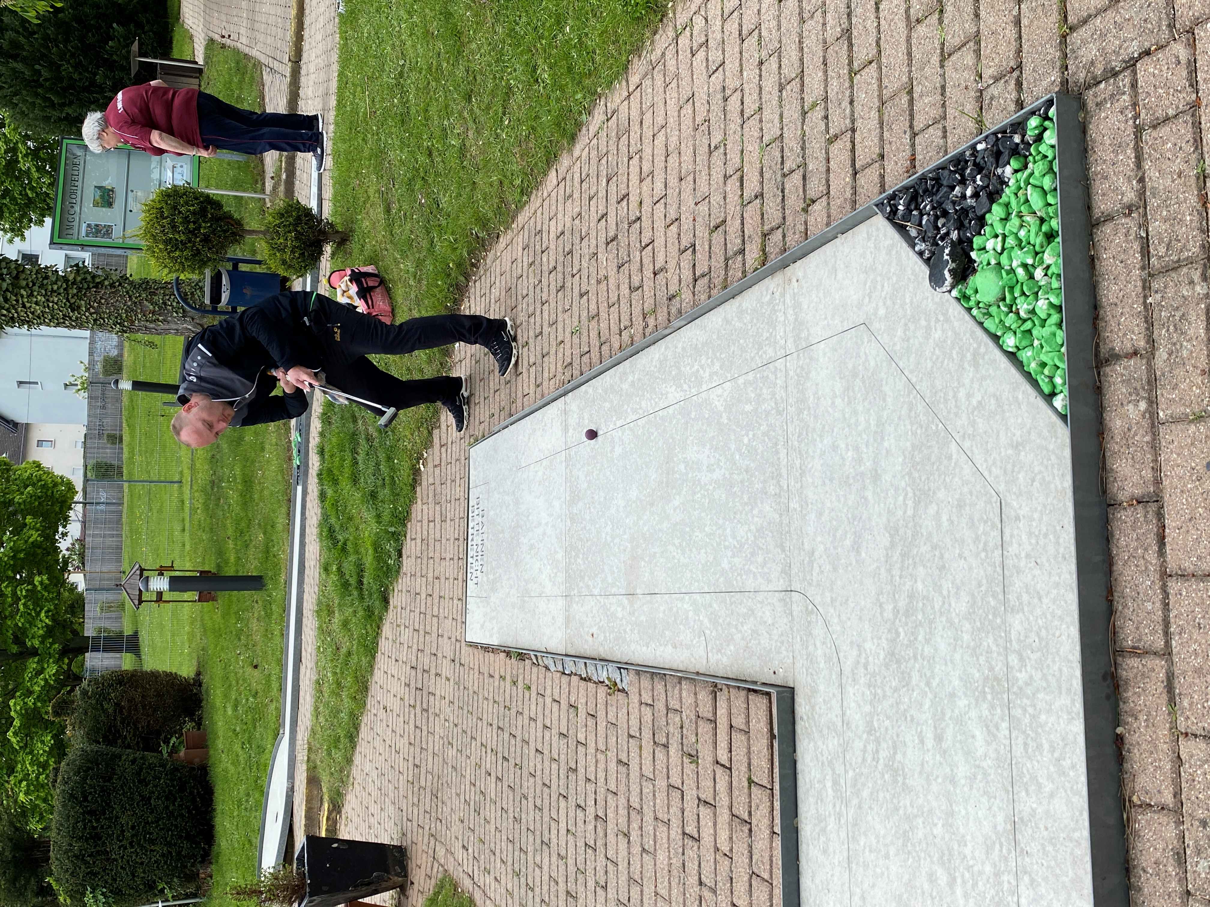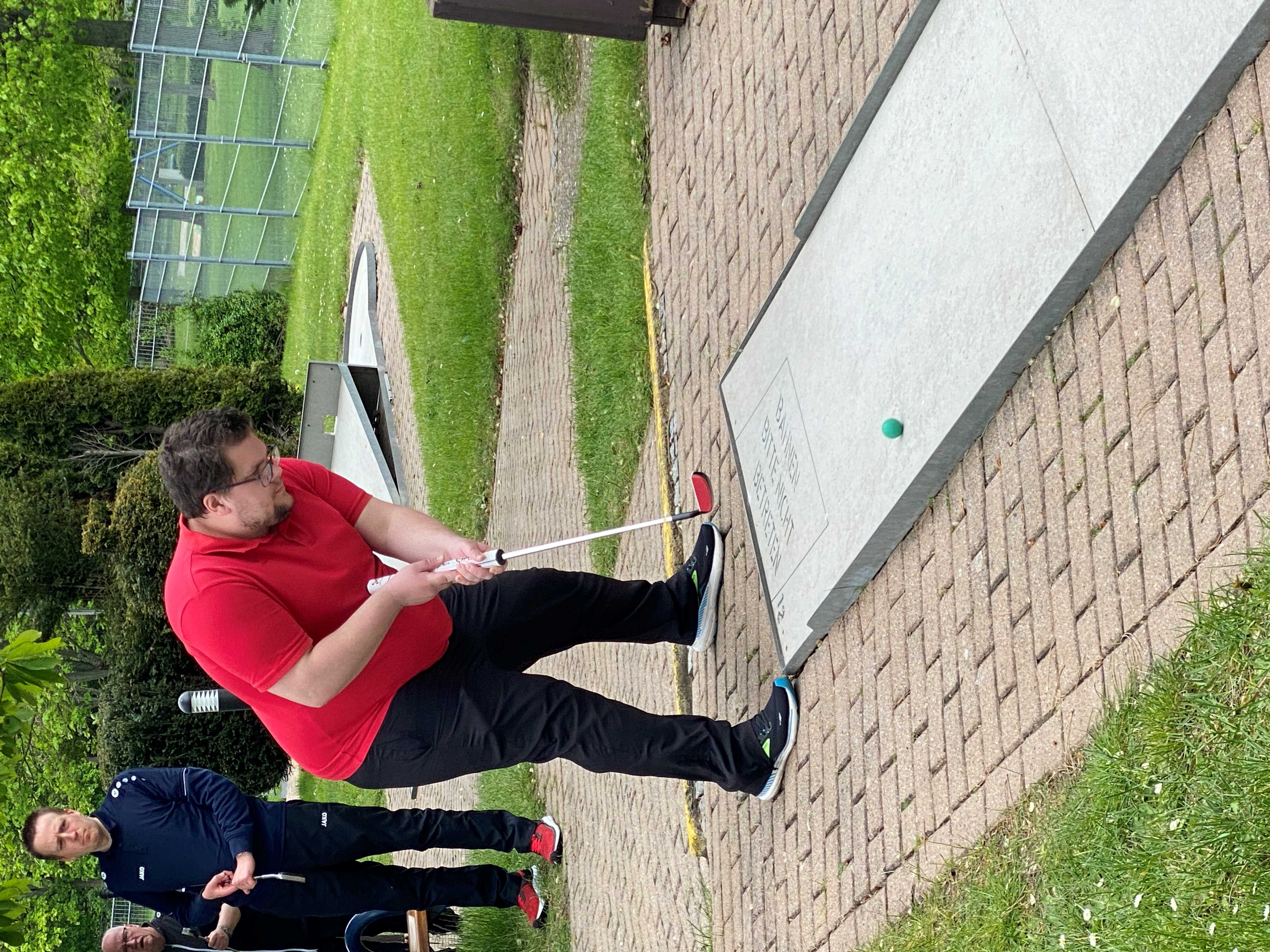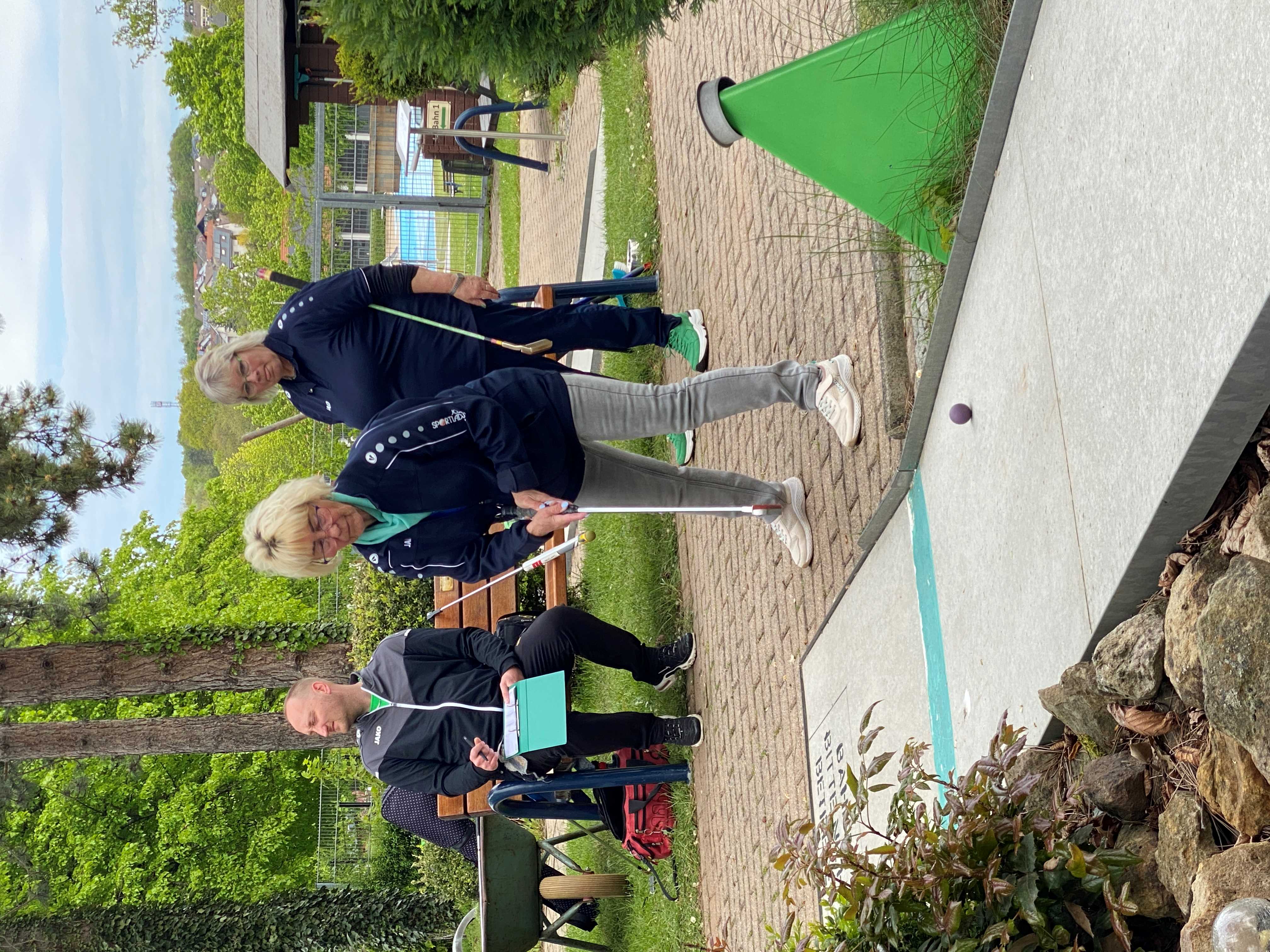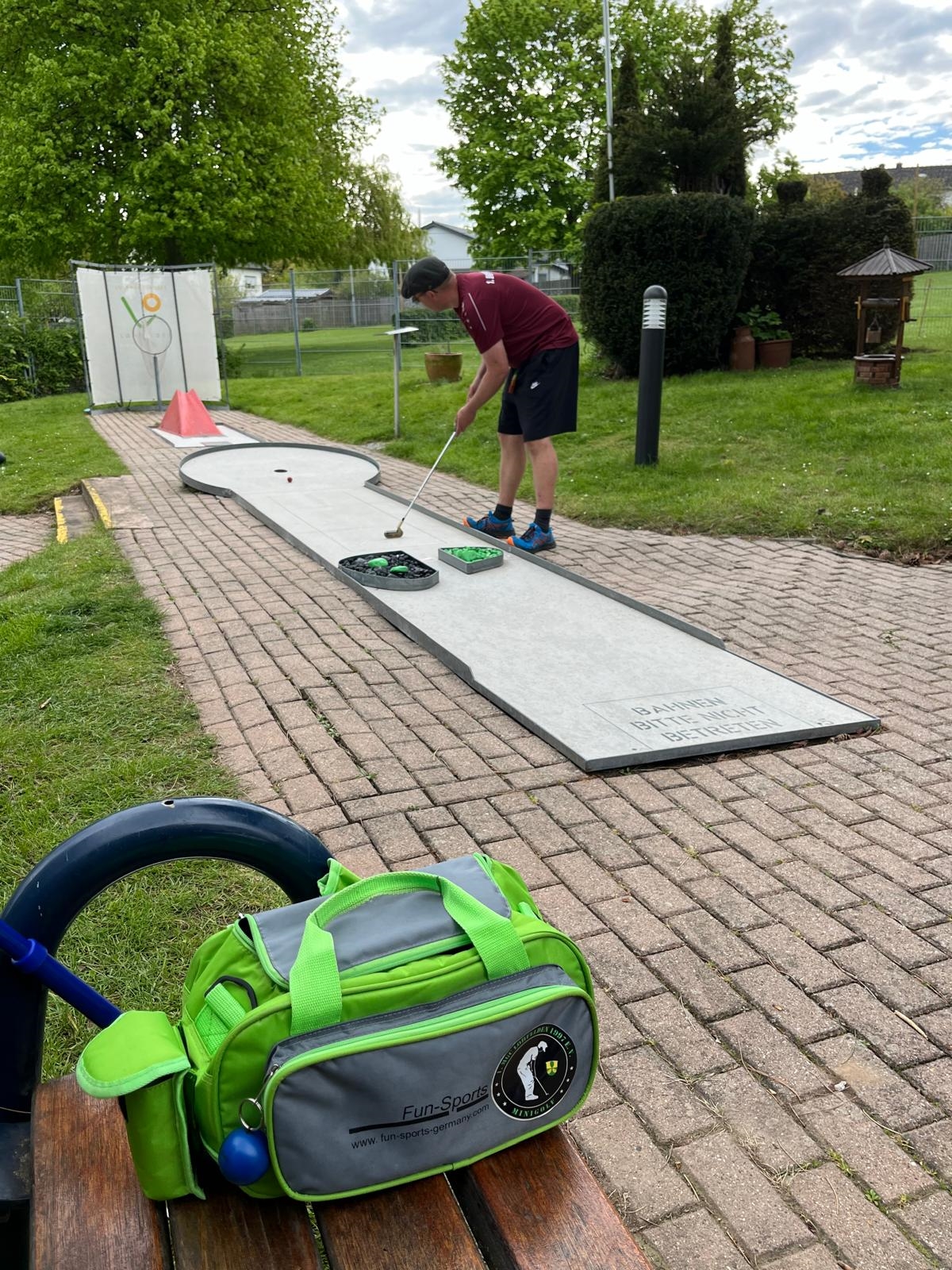 87 Schläge sollten heute Tagesbestleistung werden. Bedingt dranbleiben konnten da nur die Göttinger (102), die heute mit Sandra Brendler für Matthias Schulz an den Start gingen. Steffen Brendler freute sich in Runde 1 über eine starke 20er Runde. Auch Patrick Bartholomä konnte mit 22 Schlägen grün an die Tafel bringen. Alles anderen mussten rote oder sogar schwarze Runden abzeichnen. Wer Lohfelden nicht kennt, dem sei gesagt, es gibt viele Bahnen an denen man Asse machen kann. Aber plötzlich gehen genauso gute Schläge einfach nicht mehr rein. Es musste also sehr genau gespielt werden um hier erfolgreich zu sein. Das hatte das Peiner Team am 2. Trainingstag ebenfalls zu spüren bekommen auf den Trainingsprotokollen. Dazu noch ein Hochteller, der an den in Flensburg Harrislee erinnert und einen Schrägkreis, an dem man nicht wirklich putten möchte. Auch die Röhre brachte manchen Aktiven zum Verzweifeln, denn auch hier musste genau eingespielt werden. Auf den Plätzen kamen weiter Wolfsburg (114) vor Lohfelden (117), denen man die Nervosität anmerken konnte. Man hatte sich heute viel vorgenommen. Die rote Laterne übernahm Kassel Vellmar die mit 124 Schlägen noch Luft nach Oben hatten. Auch die nächsten Durchgänge brachten alle Farben an die Tafel und das Wetter wurde wärmer aber auch windiger, was so manchen Blütenregen mit sich brachte. Peine spielte in Runde 2 einen 93er Runde und dann kam es auch für die Favoriten so, dass sich die Trainingseindrücke wiederholten, denn mit zwei 99er Runden war dann auch bei Peine mehr rot als grün auf den Protokollen zu finden. Um die Plätze 2 und 3 kämpften heute Wolfsburg und Göttingen. Göttingen konnte in Runde 2 noch dagegenhalten aber in Runde 3 musste man die Wolfsburger dann vorbeilassen, die mit einem 96 Durchgang sogar Peine im Sack hatten. Bei Göttingen war dann auch die Luft raus, da halfen auch die guten Runden von Holger Fabry nicht. Zu viele schwarze Runden waren im Aushang zu finden. Am Ende wurde es Platz 3. Wolfsburg spielte zwar nicht überragend, aber konstant und damit holte man sich heute mit 416 Schlägen und einem 26,0 Schnitt 6 Punkte. Um Platz 4 und 5 kämpften die Heimspieler und der Nachbar aus Vellmar. Hier hatten aber die Lohfeldener die Nase vorn. Mit 449 Schlägen holte man sich, die ersten 2 Punkte der Saison. Vellmar kam am Ende auf 461 Schläge. Den Tagessieg holte sich wiederum das Team aus der Fuhsestadt mit 378 Schlägen und einem Schnitt von 23,675. In 4 Wochen richtet Peine dann den nächsten Spieltag aus.