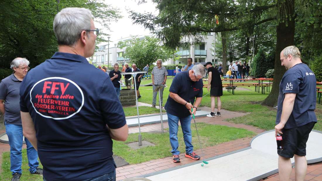 Aufgeteilt in Fünfergruppen spielten die 98 Teilnehmer, darunter viele Feuerwehrleute, auf der 18-Loch-Turnieranlage. Die wenigsten Schläge brauchte Jutta Möller, die mit 33 Schlag auf 18 Bahnen Turniersiegerin wurde – gefolgt von Stephan Goltz (34 Schlag) und Uwe Möller (36 Schlag).
